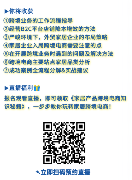 為(wèi)廣大(dà)外(wài)貿家(jiā)具家(jiā)居企業(yè)量身(shēn)打造的(de)“行(x♦íng)業(yè)探索系列公開(kāi)課-跨境電(diàn)商專場(chǎng)”又(yòu)将來(lái)襲。本次線✘上(shàng)直播特邀中國(guó)國(guó)際家(jiā)具展覽會(huì)的(de)戰略合作(zuò)夥伴,指定外(wài)貿B2B交易平台–大(dφà)建雲倉,以及e-Bay, 艾麗(lì)特思家(jiā)居的(de)5位行(xíng)業(yè)打卡,帶來(lái)他(t∏ā)們各自(zì)的(de)洞察和(hé)分(fēn)享,為(wèi)更多(duō)外(wài)貿家(jiā₹)居企業(yè)解惑。