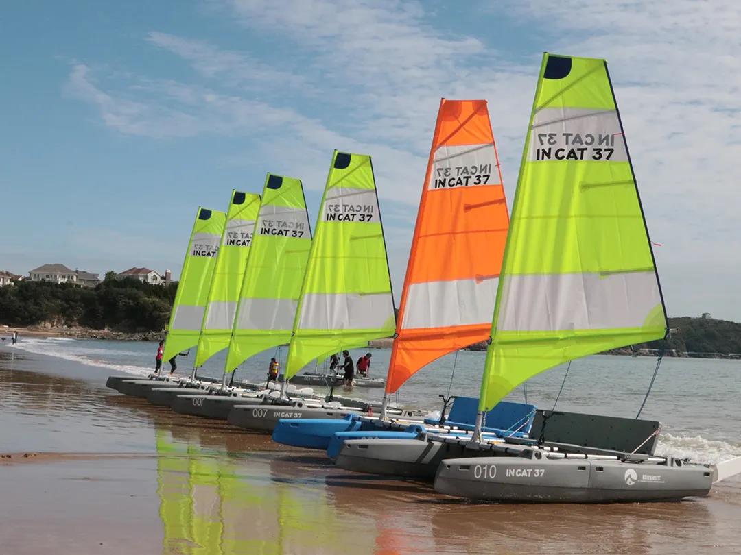 INCAT 3.7 雙體(tǐ)帆船(chuán)同樣由高(gāo)密度聚乙烯(HDPE)制(zhì)成。雙船(chuán)體(tǐ)結合鋁合金(jī≠n)框架和(hé)單桅杆單帆、雙舵操控。單排三人(rén)座椅有(yǒu)助于體(tǐ)驗者快(kuài)速掌握駕駛技(jì)巧,适合公園、旅遊景區(qū)、遊艇俱樂(yuè)部,>用(yòng)于休閑、培訓及規模性大(dà)衆帆船(chuán)活動或賽事(shì)使用(yòng)。